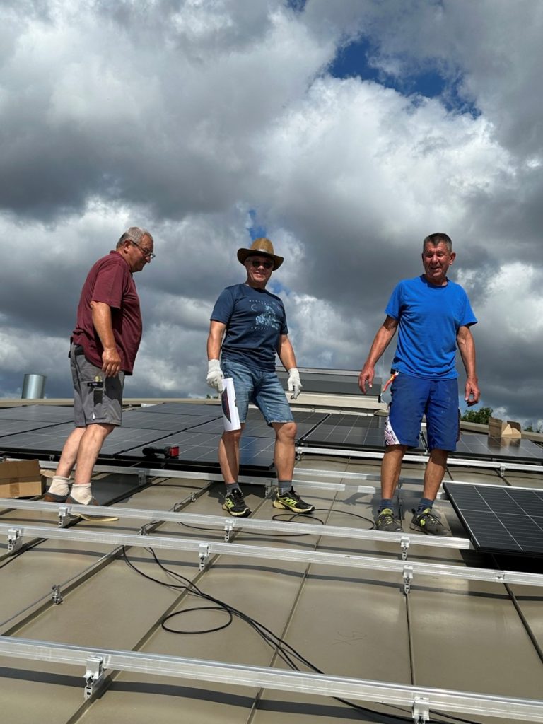 In ehrenamtlicher Eigenleistung haben Aufsichtsrat und Vorstand in gut 3 Tagen eine PV-Anlage auf das Dach des Kindergartens in Berghülen gebaut. Obwohl die Arbeiten im August 2024 abgeschlossen waren, ist die Anlage trotz übermenschlicher Anstrengungen des Ingenieurbüros Puscher, der Firma Strobl und dem Albwerk immer noch nicht am Netz. Stand 25.7.2025.